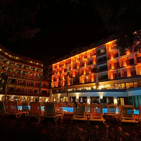 The 5-star The Raga Side Ultra All Inclusive hotel is approximately 15 minutes' walk from Side and has a seasonal outdoor pool and a fitness studio. Staying at the hotel, guests can discover the beach area, well-known for cultural highlights like Side Museum, which stands merely 1.2 km away.